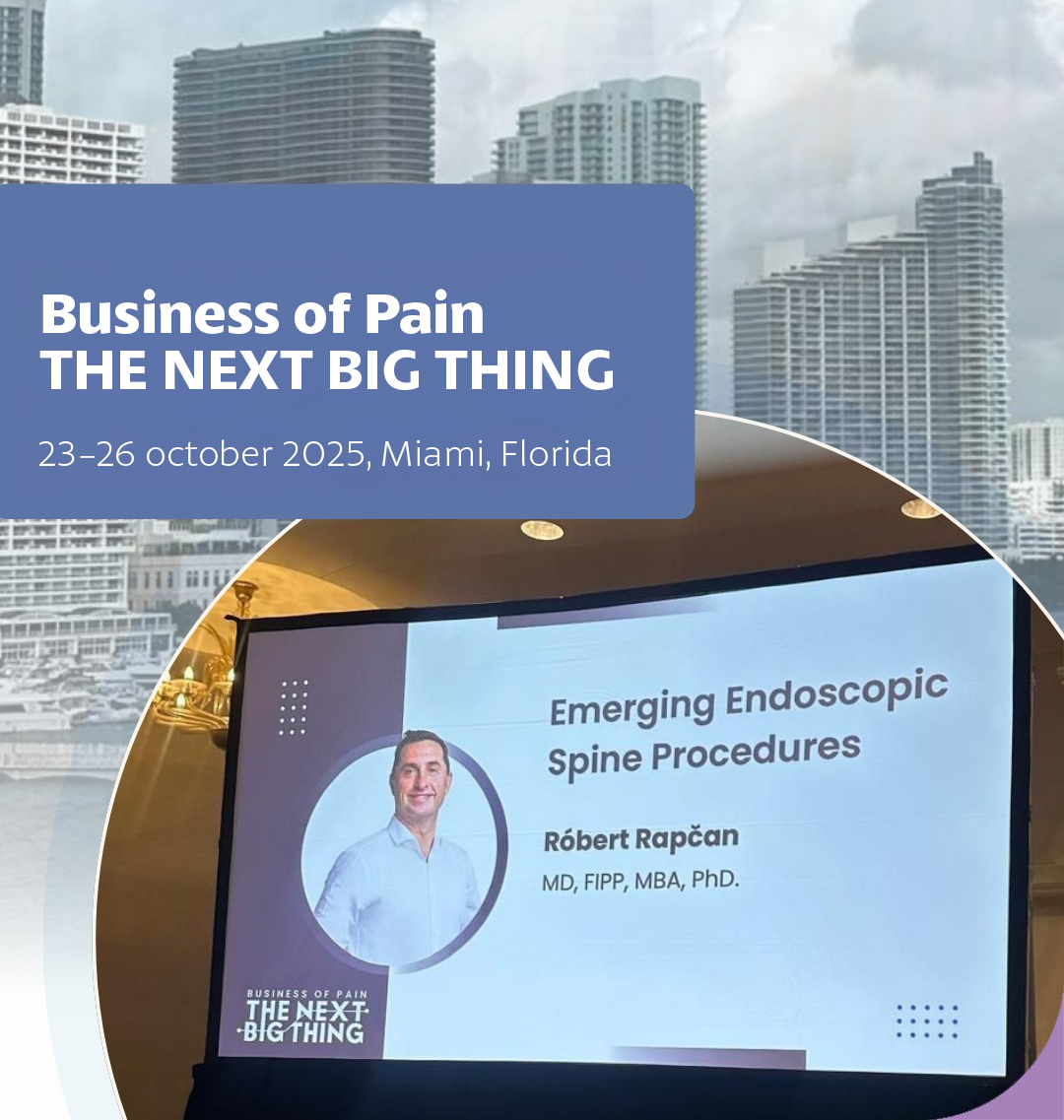 MUDr. Róbert Rapčan, FIPP, MBA, PhD., medicínsky riaditeľ EuroPainClinics, sa v dňoch 23.-26. októbra zúčastnil prestížnej medzinárodnej konferencie Business of Pain: The Next Big Thing – „Kde sa pretína medicína bolesti, veda a obchod“, ktorá sa konala v Miami.