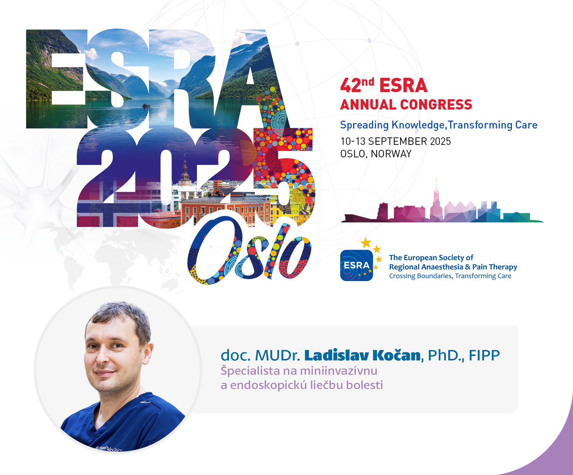 Doc. MUDr. Ladislav Kočan, PhD., FIPP, sa zúčastnil na 42. výročnom prestížnom medzinárodnom kongrese ESRA 2025 (European Society of Regional Anaesthesia and Pain Therapy), ktorý sa konal v dňoch 10....